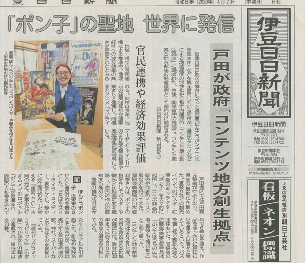 沼津市戸田が舞台となった漫画『ぽんこつポン子』(矢寺圭太作)観光活用による地域経済の活性化 官民連携や経済効果が評価(伊豆日日新聞)