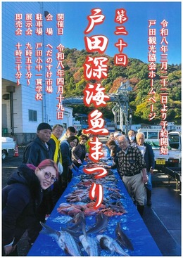 第20回 戸田深海魚まつり日 時 2026年4月19日(日)9時50分~12時<荒天中止>会 場 へだのすけ市場海側特設会場(駐車場ありません)参加条件 事前予約 申込開始2026年3月2...